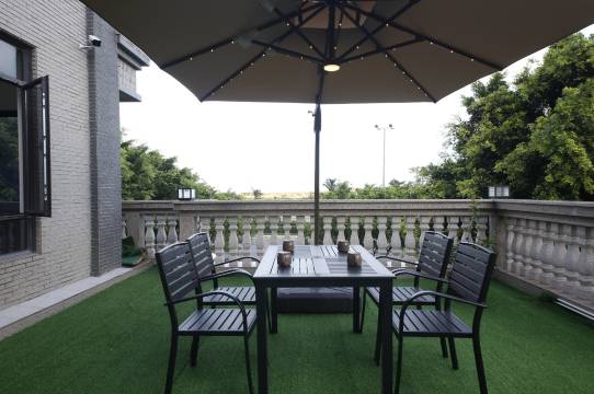 酒店坐落于机场附近,地理位置佳。独立的小院子到处都弥漫着米兰和桂花的香气。花香馥郁。在这清幽的院子里可茶,可荡秋千,还可以举办小型聚会。在这里,您可以尽享宁静与畅然。酒店附近还有神秘的太空中心,充满魅力的海岛日记和金沙滩等几个景点,无论是您探索太空奥秘,还是漫步海滩都让您的旅程更加丰富。整栋别墅设计典雅,二楼和三楼都有公共平台,也是休憩的好地方。一楼棋牌可以满足您的娱乐需求。无论出差还是旅游,在这里都是您不错的选择。航展期间,您还可以在露台上近距离的观看八一飞行队的表演。让您感受祖国的强大和飞行带来的震撼。让我在海韵美居等待您的到来,在宁静惬意中共度美好时光。