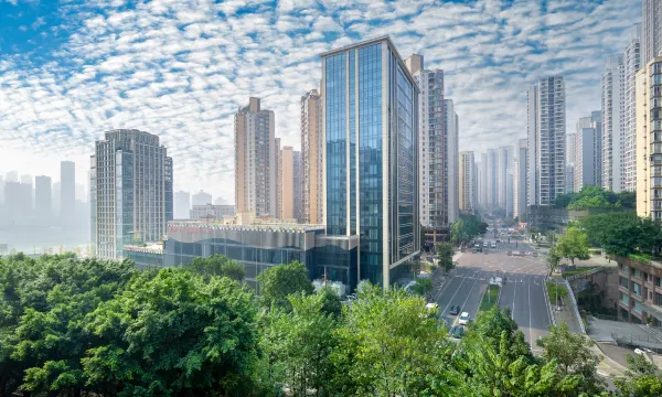 酒店位于“中国四大嘴之一”的重庆市两江新区江北嘴核心地段,一线头排江景,与渝中区解放碑、洪崖洞隔江相望。酒店毗邻轨道交通九号线,距离重庆主城各大景点如解放碑、朝天门、洪崖洞、大剧院、鎏嘉码头、江北嘴中央公园、临江公园等多个都市旅游风景区打卡点均有便捷交通直达。酒店还拥有独具特色的豪华宴会厅及会议厅、包房、茶室等多元化配套场地。且配备多种宴会厅,包含净空高达10米且无柱的宴会厅共计2900平方米,可同时容纳宴请220桌,接待人数2200人的超高级的宴会会议场地。酒店独有户外草坪场地、观景平台、观光电梯、独具特色的“日月同辉”水幕景观等,室外区域面积超过6000平方米,均为180°环幕览江,灵活多变!可定制户外草坪婚礼、露营、茶歇和酒吧等,与近在咫尺的嘉陵江流域景观交融,完美诠释"山水之城,美丽之都"的魔幻网红特质。酒店宴会厅灵活多变,每个厅都配备先进视听设备,可按您的需求订制多种类型的宴会会议。酒店还设有19间中餐包房,融入多样菜系美食供四方来宾甄选。621个泊车位,为国内外来宾提供无与伦比的便捷的服务,让您每一次的商务宴请、会议宴会都显得格外专业高效。
