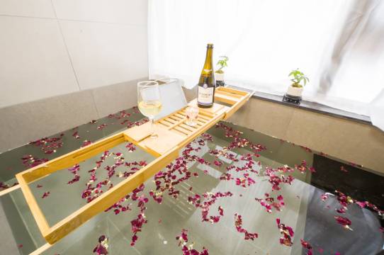 自带温泉私汤,泡着超解乏,水质也很好。民宿在小区里,环境安静优雅、空气清新,完全没有嘈杂感,特别适合放松休息。