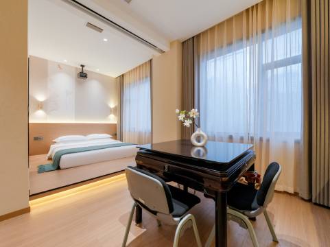 艾琪悦己酒店坐落于望城路4号充满活力的城市核心地段,周边交通便捷,临近多个热门商圈。 包括温馨舒适的标准间、宽敞雅致的麻将套房以及独具特色的亲子房。房间装修风格现代简约,融入了时尚元素,营造出温馨且富有格调的居住氛围。 酒店配备了完善的服务设施,设有24小时前台,提供贴心的行李寄存、叫醒服务等。还设有健身房,让客人在闲暇之余能尽情放松身心。