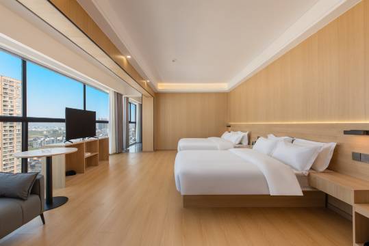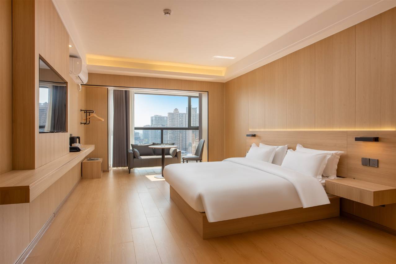 选择入住这家酒店,主要就是交通便利,离后面菜市场和夜宵街很近,走路五分钟就到了,想吃啥都有哈哈😃。旁边各种奶茶小吃面包店水果店应有尽有,订了房,很高兴前台小姐姐帮忙升级了房型谢谢哦,推开门房间设施简约,落地玻璃窗大气,可以俯瞰城市风景,旁边的古茗奶茶很不错哦,休息时到旁边喝了一杯奶茶舒服!