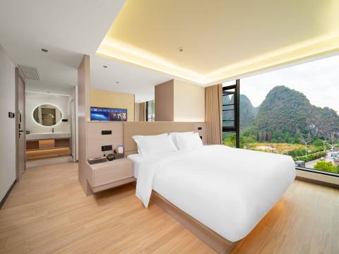 这家酒店就在阳朔十里画廊正门口,位置真的太方便了!出门就是景区,骑行、逛遇龙河超近。房间干净整洁,床品舒服,晚上很安静。前台热情贴心,还会给游玩建议,性价比超高,来阳朔住这里很省心,强烈推荐!!!!