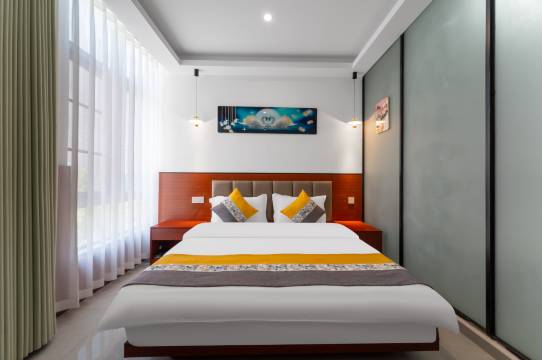 交通便利就在高铁站附近走几步就到,附近饭店超市到处都是,老板娘服务态度好,房间宽敞安静床睡得很舒服,房间干净整洁也很大,非常满意。