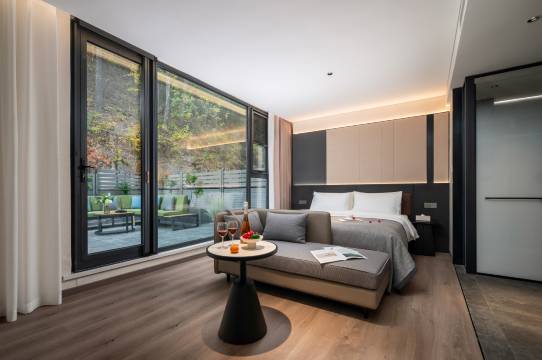 酒店给人耳目一新的印象。大堂与房间设计简约、休闲。设施完善,卫士干净整洁,环境舒适优美,服务一流,餐饮美味。交通便利,酒店对面便是停车场,距离上山索道仅百米之远。很高兴周末在此度过一个悠闲时光,期待秋天再次光临H.露台酒店。