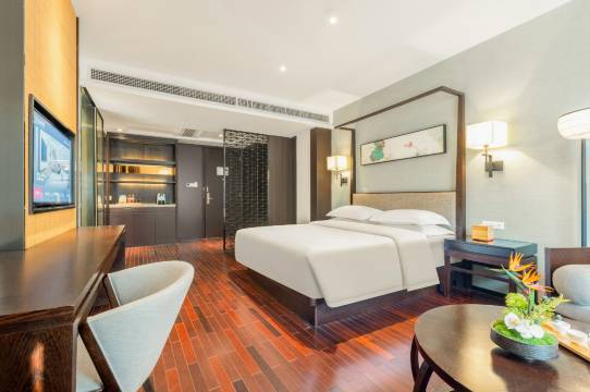 强烈推荐这家酒店!位置绝佳,离万象城特别近,五六分钟就到,出行购物都很方便。健身房设施完善,运动很方便;洗衣房干净好用,解决出行洗衣难题。前台和客房服务都很贴心,响应快、态度好,房间干净整洁,住着特别舒服,下次来还选这里!满意!