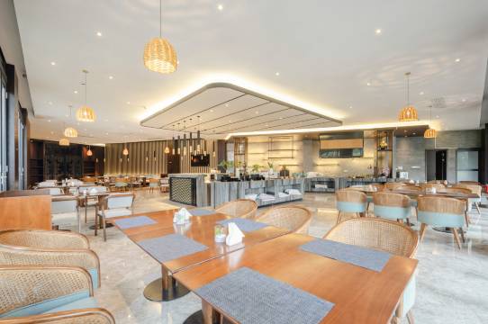强烈推荐这家酒店!位置超赞,步行几分钟就到万象城,逛街很方便。前台办理入住的时候服务热情专业,服务很好,高效又贴心。房间里面干净整洁,空间宽敞舒适,有大沙发,床品软软的睡得很香。配套很齐全,健身房设备新、洗衣房方便实用,还有洗衣送回服务很方便。自助早餐种类丰富味道好,整体体验满分,下次还会选择入住!推荐推荐。