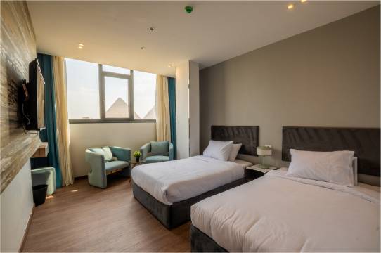我宣布:这家酒店是我在埃及旅游半个月以来最舒适最满意最干净的一家!窗外还可以看到金字塔。这家酒店真的是无意中发现的,作为中国游客,还是比较在意干净这一点的,没想到这么便宜的价格我能住到这么干净整洁的房间 全部都是新的装修,房屋设计和灯光 空间 家具 卫浴用品没想到还有护发素!擦澡的丝瓜巾!太棒了 床品也是崭新的,折痕还很清晰,毛巾也是新新的,连住了两天,第二天回来发现保洁阿姨帮我换了全新的,而且还帮我把乱扔的衣服叠好了 真的太暖心了 走的时候迟了一会下来 也是免费的 还问我住的怎么样?服务人员都特别热情 有礼貌 出门这个爷爷还主动帮忙开门 我真舒服啊住在这里 一定一定要订这家!