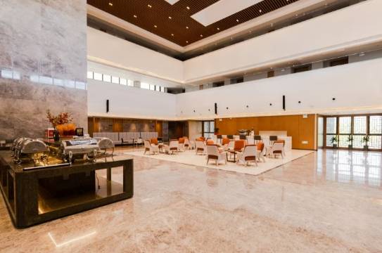 江南大学宜兴国际学术交流中心坐落在风景秀丽的宜兴东氿湖畔,宛如一颗璀璨的明珠,镶嵌于江南大学东氿校区西北区,散发着独特的光芒,静谧而充满魅力。总建筑面积17000多平方,是宜兴市政府与江南大学携手合作的结晶,专为高校国际交流与学术会议精心打造,是知识碰撞与文化交融的理想舞台。在无锡江南大学资产管理经营有限公司的悉心管理下,国交中心以商务型酒店的卓越姿态,将会议、住宿、餐饮完美融合。