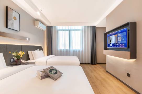 酒店离地铁站近,去哪里玩都方便。通风好,干燥整洁。前台小音服务很热情,床品都是新换上的雪白的床单和被套,很干净,没有污渍异味。卫生间虽然不大,但是有干湿分离,开了排气扇就没有异味。每天保洁都会去房间打扫,换上干净的毛巾,一次性杯子和牙刷以及拖鞋,晚上玩回来了可以放心使用这些卫生用品。最满意的是我订的双床房,床品用的都是很柔软又有承托性的乳胶床垫和枕头,睡着好舒服。