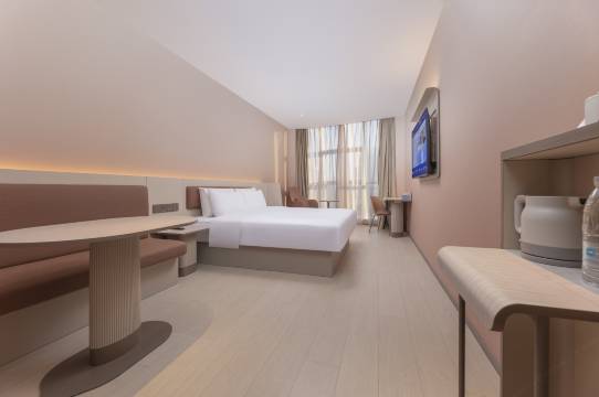 汉庭泗县万像奥特莱斯酒店位于城市新中心,紧邻中央公园,周边商场、泗县人民医院、学校配套齐全,环境宜人。酒店毗邻万像奥特莱斯,集购物、餐饮、娱乐于一体,汇聚星巴克、海底捞必胜客、卡旺卡等众多知名品牌,台球、美食选择丰富。店内设有休息区免费咖啡茶饮、自助早餐、自助洗衣及舒适客房,适合商务出行与休闲购物。交通便利,距火车站、泗县高铁东站及汽车站约15分钟车程,距泗县人民政府、泗县政务服务大厅约8分钟车程,并提供免费停车、充电桩。作为华住集团旗下品牌,汉庭3.51版本以低饱和度配色与圆润曲线设计,营造松弛氛围,并提供自助入住、机器人服务等便捷设施,致力于为旅客提供干净、可靠、高性价比的住宿体验。