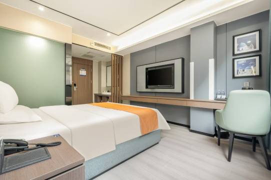 房间干净敞亮,床软乎好睡!前台热情,下次来还选这~