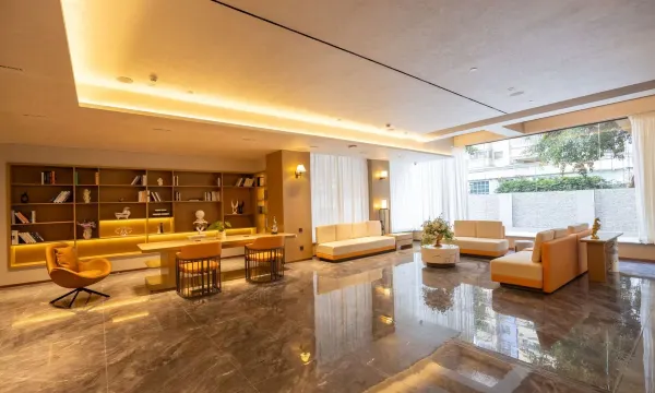 大堂休息区布置温馨,蝴蝶兰盛开,增添生机,书架陈列精致,营造出舒适的阅读氛围,前台服务热情,入住迅速,房间灯光设计柔和,窗帘遮光效果好,晚睡人的福音,房间整洁安静#卫生干净 环境:交通方便靠近地铁,周边小区居多,不靠马路,晚上很安静。