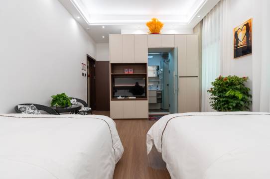 房间干净整洁,位置优越,装修上画了很多心思,附近就是母亲缘广场和汀洲客家剧院,交通方便,并且距离店头街三元阁也很近,是个很不错的体验!