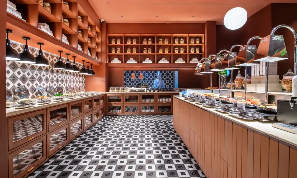 早餐是此次入住的一大亮点。酒店巧妙融合德国风味与中国元素,带来一场舌尖上的文化碰撞。德式地道风味令人惊艳;各类香肠、培根、德国结(Brezel)还原度极高,仿佛置身慕尼黑早市。同时,中式早餐也极为丰富:热腾腾的米线、爽口无骨鸡爪、现煮面条、蒸点、炒菜与新鲜水果一应俱全,满足不同口味需求,真正做到了“中西合璧,各有滋味”。