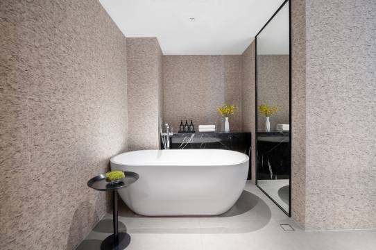 酒店前台服务热情贴心、效率高、主动协助搬运行李。房间整洁干净,设施齐全且现代化,有智能马桶、自助洗衣机和健身房等。房间宽敞明亮,隔音效果好,床品舒适,卫生间配备高品质洗浴用品。酒店公共区域设计高端,香氛和氛围感较好。