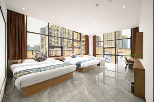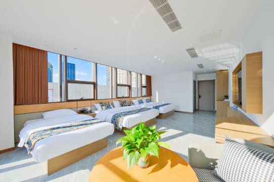 一进门,房间宽敞,明亮,还特别干净,一张大床,两张单人床,也不拥挤,家庭出游的首选!非常超预期的满意!我们一家四口住的非常舒适!位置也很棒,紧挨着韩乐坊,很方便!