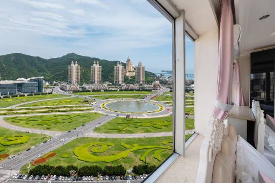 视野非常好,俯瞰星海广场。自助式入住,很顺畅。房间很大,除了毛巾外还备了一次性毛巾浴巾,床单被罩也很干净,还配有冰箱和洗衣机。