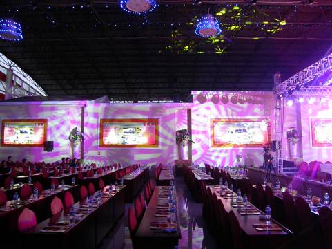 宴会宫有可同时接纳200桌的婚宴餐厅,以及各种大小多媒体会议室4间。