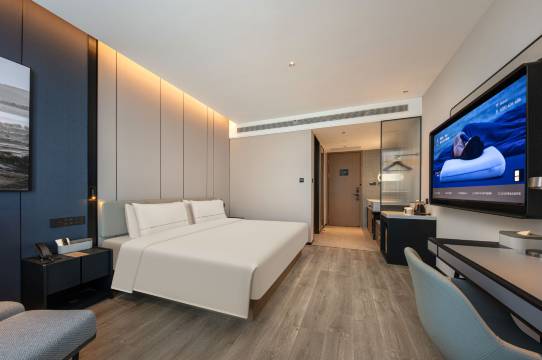 酒店整体还是很不错的,亚朵早餐很有特色的,混沌很好吃,房间性价比对比附近算是比较高的了,住的干净又舒服,前台服务超好的,附近点外卖超级方便,用机器人送的哈哈,很不错