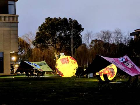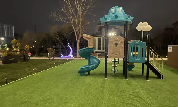 5.室外还有滑滑梯,游泳池,大草坪,风景特别好,夜晚装饰也很美