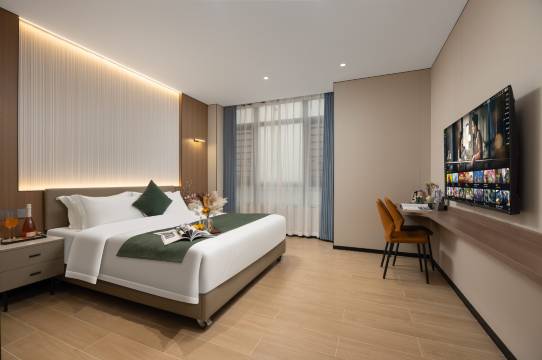 干净整洁,装修简约大气,床品舒适。酒店设施丰富餐厅、棋牌室、洗衣房都很齐全。前台服务热情,入住退房都很快,省去不少时间。