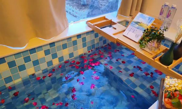 一大家子假期自驾出行,三大两小,选择这里太赞了,离停车场不远,店家会主动帮忙到车场拿行李,服务好到没话说,对了免费停车免费停车呦~位置绝佳,出门就是小吃街,但是晚上睡觉特别安静,闹中取静,一点不吵,逛了一大圈,晚上泡个温泉,一下子就解乏了,安安静静睡个大觉,要是有房肯定继续多住一晚了,总之一家子都开开心心,下次要来还住这里