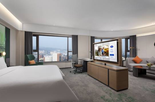 酒店位置离机场很近,地铁两个站就到了,对于来贵阳出差需要赶飞机的人士很友好,出地铁直走两三分钟就能到。 设施挺新的,有配备恒温泳池,我很喜欢。 办入住时前台小美让我倍感亲切,细心给我介绍酒店设施及周边吃的,还给我房间做了升级,让我对贵阳的第一映像就感到温暖。房间隔音也不错,睡眠体验感挺好。 是一次非常不错的出差体验。