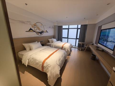 设施:酒店整体还算不错,毕竟是去年才新建的酒店。但是,说下入住感受,酒店房间挺大,地面有些卫生处理不是特别到位,有些污渍,这么大的房间居然连个沙发、椅子都不配,第一次见!标间,每个床只配了一个枕头,也是第一次见!淋浴间,居然只配了一双拖鞋,也是第一次见!酒店隔音不好,入住的向阳的房间,走廊、楼下行人吵闹声以及马路上来往车辆声音,太嘈杂了。房间房门居然没有保险扣,也是第一次见。
