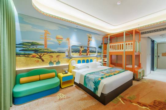 主题特色鲜明:酒店以长颈鹿等动物为主题,设计充满童趣,从大堂到房间,每一处都有森林、动物元素,色彩活泼。房间内有双层汽车床、儿童专用的马桶圈、镜子和洗浴用品等,细节之处做得非常到位,深受孩子们的喜爱。
