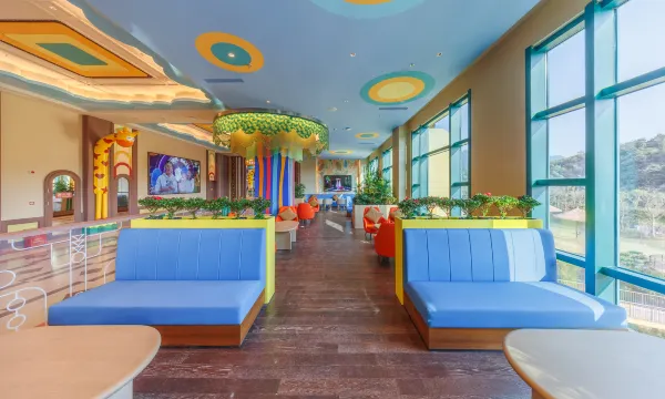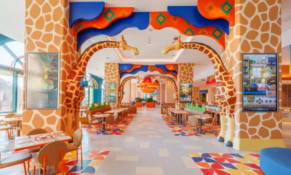 配套设施丰富:酒店内有近2500平方的亲鹿平台,住客可以近距离观看长颈鹿、斑马等动物,还能参与投喂互动。此外,还有3800平方的超大室内儿童无动力乐园,集游玩、演艺、美食、休闲于一体,让孩子充分释放爱玩的天性。