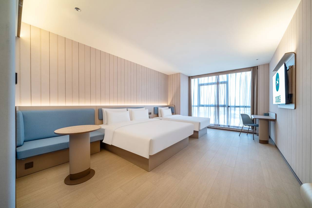 酒店很新,房间较大。设施智能,卫生干净。位于新市古镇周边工业园区,较安静。个人感觉餐饮、购物不是很方便,就住宿而论性价比较高