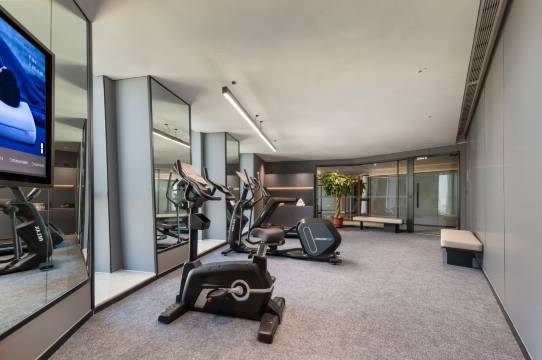 房间色调是白米大地浅灰深灰黑色的,既和谐又不单调。床垫枕头都是记忆性的,叫深睡星球好像,还算舒服,睡得可以。马桶智能加热的,窗帘自动的,电视65寸可投屏。晚上有免费粥,有免费健身房。50多层视野独特更开阔,但要站在飘窗上看有点吓人。也许别的房型看景更方便。前台主动给升的房,升的什么房型我也没听清。