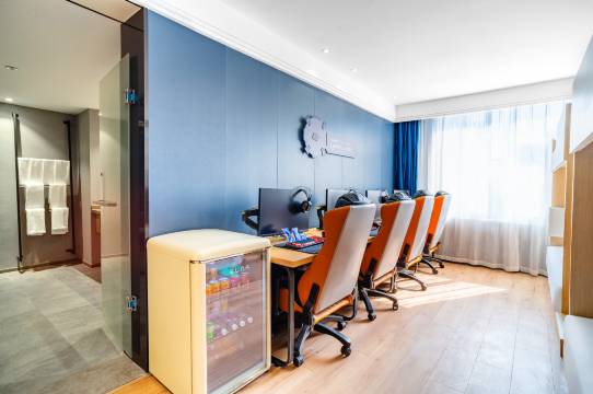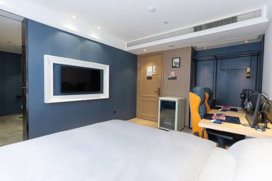房间也超出预期,不是那种乱糟糟的网吧风,床单被罩干净得像五星酒店,独立卫浴干湿分离,晚上打完游戏冲个澡特别舒服。前台小姐姐还送了饮料,服务超贴心。