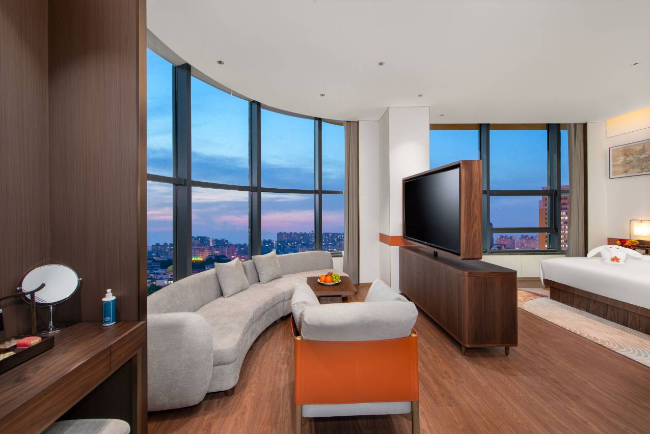 进入房间后,升级后的房型空间更大,视野也更好。房间里的智能客控系统特别方便,躺在床上就能控制灯光和窗帘,科技感十足。高清投屏的体验也很棒,和朋友窝在柔软的大床上看电影,感觉旅途的疲惫一扫而空。