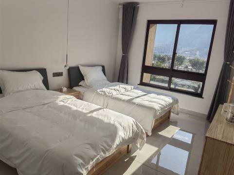 看了评论才订了这家民宿,新房新装修的,床上用品也是新的,房间也很大,住的很舒服,洗淋浴水很大。离景区十分钟左右,很近,推窗能看到景区,在汽车站打电话问老板,老板娘开电瓶车来接我们二次,行李少的走十几分钟也到民宿了,老板娘人不错,很客气。这家民宿离景区算是路最近的,值得推荐。