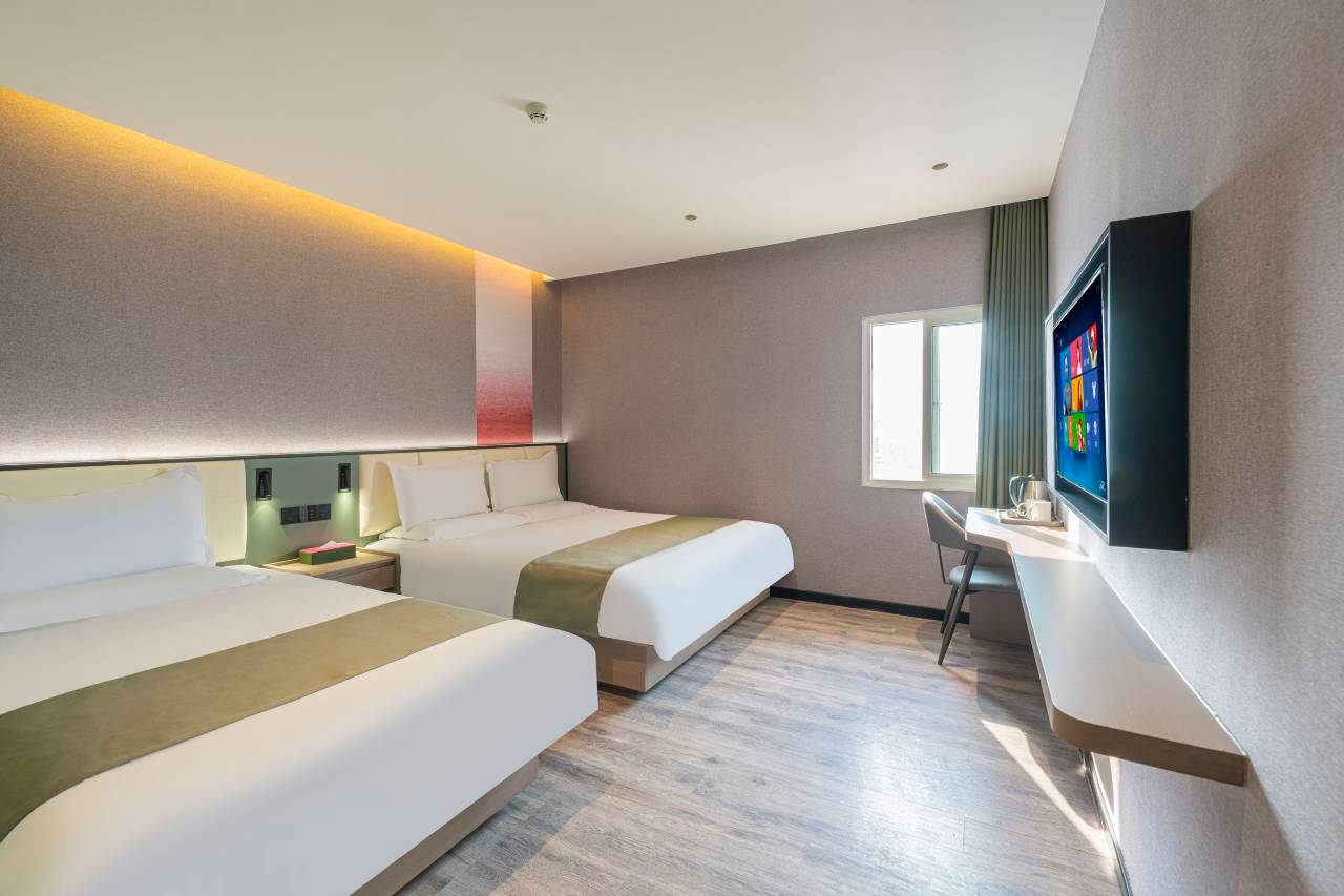 走进房间,干净整洁的环境一下子就让人心情舒畅。床铺软硬适中,睡起来特别舒服,一晚上都没怎么翻身,第二天精神满满。房间的设施也很齐全,电视、空调、Wi-Fi都很好用,还有贴心准备的免费矿泉水和。卫生间打扫得一尘不染,洗漱用品的质量也不错。