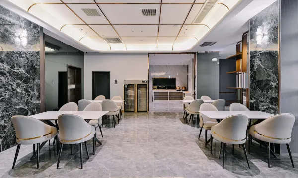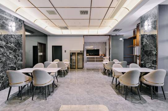 大堂装修高级又敞亮,落地窗采光巨好,拍照都不用滤镜!休息区软乎乎的,还有自助饮品柜,冰饮、咖啡随时能炫,太爽了!