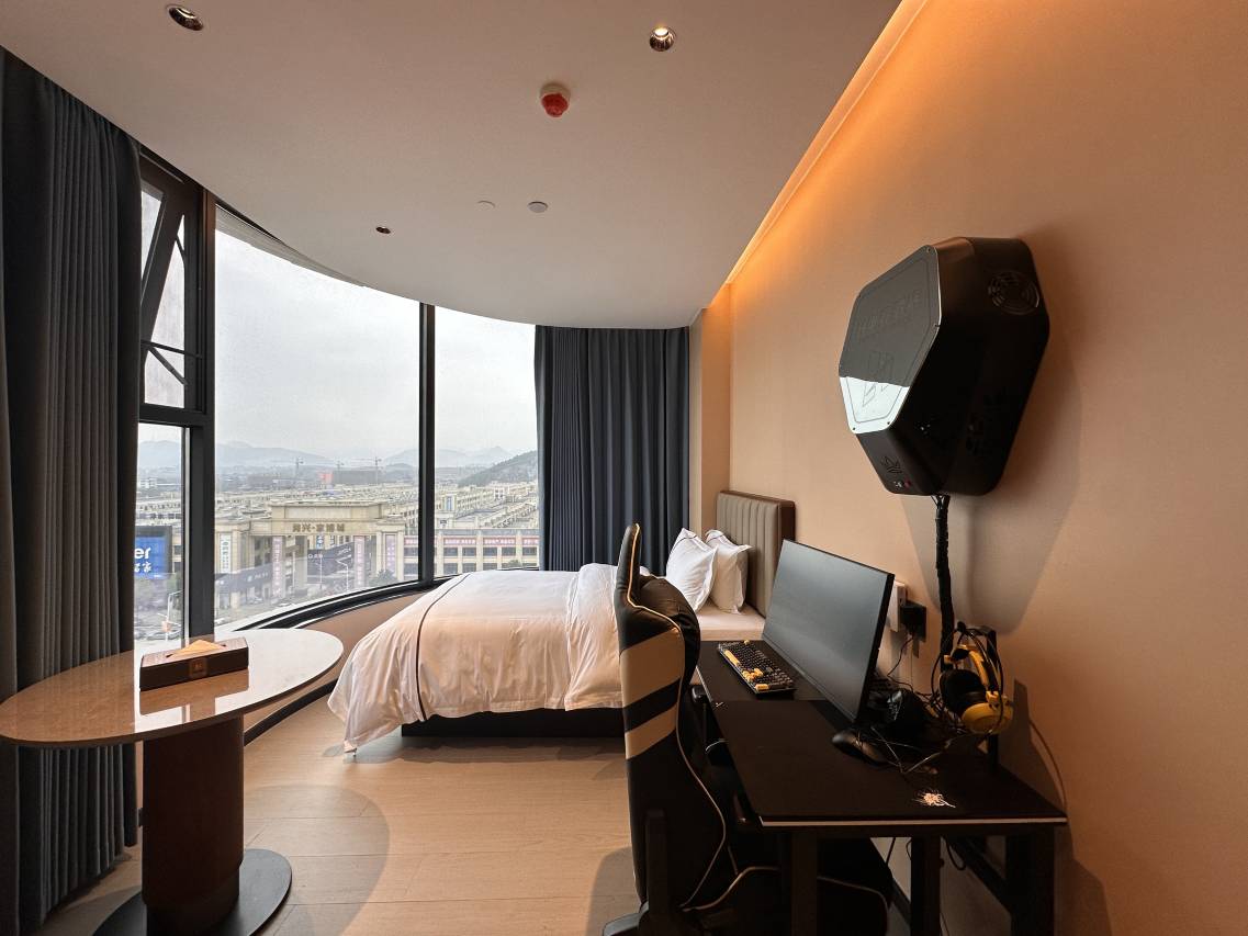 房间设计很有电竞风格,墙上还有游戏海报和LED灯带,氛围感拉满!和朋友一起开黑,感觉就像在电竞俱乐部一样,特别有代入感。