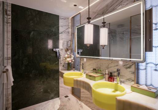 房间里的配置也超用心,进口玉石台面的迷你吧、汉斯格雅的花洒、科勒的智能马桶,细节里全是质感,慕思床垫睡起来软乎乎的,躺上去就不想起了😌