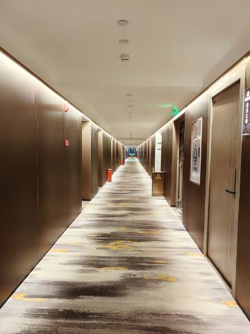 进门就看到非常大的窗户,今天来的刚刚好有太阳,看着很舒服,有种在落地窗前欣赏外景的感觉哈哈哈。本来订的这个房型是没有早餐的,但是老板很善解人意免费给我们送了早餐,洗漱台很宽,梳妆镜也是有补光灯的,还有牙刷梳子剃须刀,吹风机是徕芬这个牌子的,也是不伤发质的那种,最重要的是床铺很舒适,睡着很舒服,家居是智能的。酒店的走廊也很高级,灯光不刺眼很温和,前台还有沙发,房间里待闷了也可以出来坐会,下雨天要出门还可以到前台借伞,好评!!!