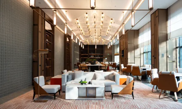 环境:大堂宽敞明亮,但休息区域有限,建议将大厅卫生间处的沙发(放这个位置很迷人)挪到前台对面的区域。