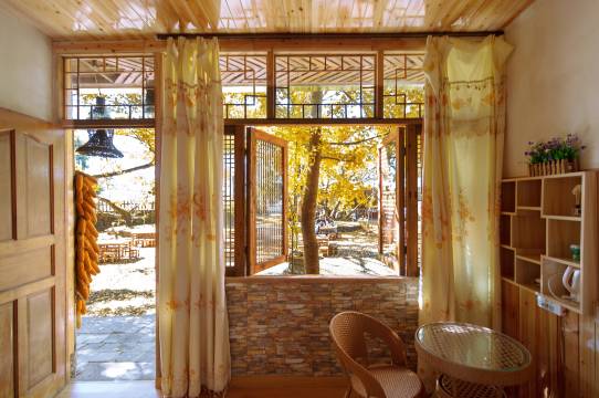 民宿太让人惊喜了!!冲着院里独有的风景而去,满院子的银杏落叶,可以惬意的坐在院子里喝茶欣赏美景,哪也不用去了,老板特别的热情好客,一直上茶上点心,瓜子核桃还有新鲜的银杏果,清香入口。房间的窗外随处可见的美景,随手一拍都像是一幅画,农家乐的饭菜也特别好,饭菜都有锅气,感受一下乡野气息,真的特别特别满意~