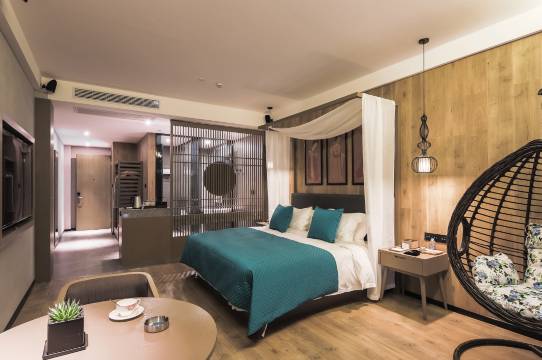 酒店拥有智能客房80余间,集智能时尚、现代简约于一体,智能系统支持手机预订;客房的大屏投影,3D影片、德国进口音响和300兆专享光纤,令您畅游商旅e时光;特有的青砖水泥木地板,吊篮沙发鸟笼床,时尚复古,舒适清新,酒店风格舒适典雅,客房内均设高速网络;酒店配备餐厅、为每一位顾客提供亲情化管家服务,让宾客尽享惬意生活,出差、旅游、交际、会客优选之地。