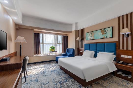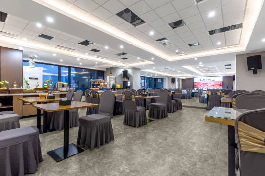 酒店服务态度非常好,入住非常快,还赠送了自制的陈皮果茶,暖心又暖胃。房间宽敞明亮,适合商务出差。酒店有配套餐饮,味道一流。早餐也很丰盛。