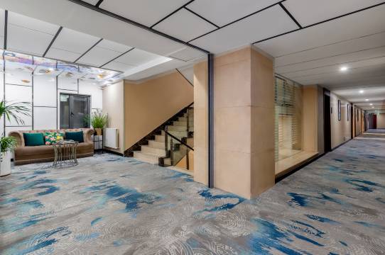 宾馆紧邻万亩风景秀丽的七里河公园,绿树掩映、波光潋滟,让你在紧张忙碌的工作中,有机会亲近树的翠绿、花的芳香、水的自然。