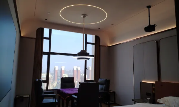 房间楼层很高,空间很大,布局很合理还有投影仪,可以追剧,看电影,房间有天猫精灵,可以控制智能设备,酒店还有机器人可以送外卖,送物品到房间门口,酒店工作人员RR的服务态度很好,很热情,提前办理了入住手续推荐入住点赞点赞