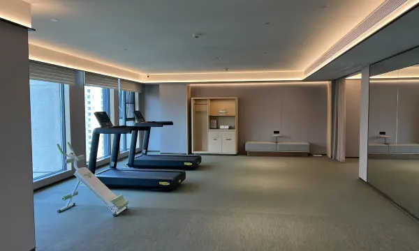 房间宽敞又明亮,配有大大的落地窗。酒店设施设备非常齐全,健身房,跑步机,洗衣机,烘干机,应有尽有!东西都是机器人负责配送,体验感非常好!