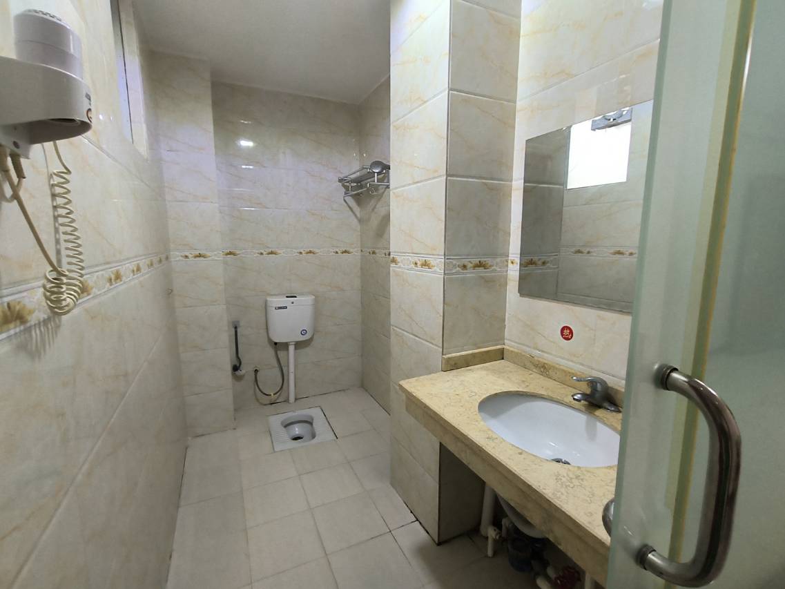 房间宽敞,床品干干净净的,就是潮,但这个是没办法的,南方就这样,有阳台,热水充足,蹲便,价格这么便宜,太可以了,有电梯,停车方便