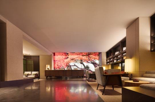 这是一家定位轻奢时尚风格的酒店,高速公路下来也就几分钟的车程,酒店停车方便,去国清寺等景区开车也很方便。