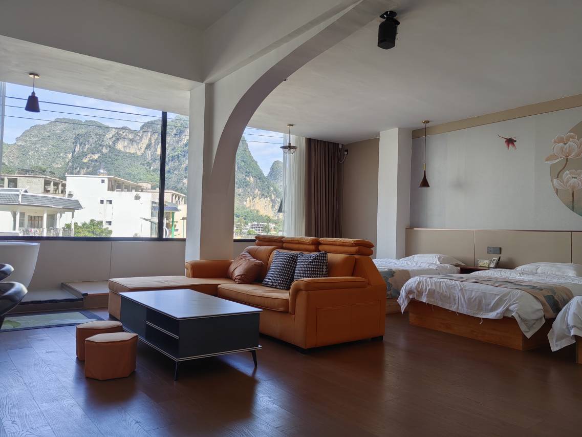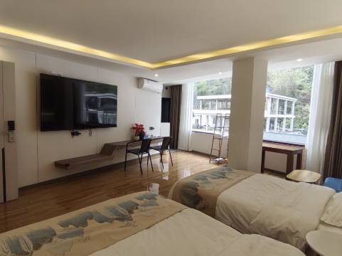 房间真的很大,服务也好,房间智能化,订的是三人间,窗外风景很美,他们家赠送的水都是品牌的景田水喝的也放心,下次出行也会选择这家民宿,也会推荐给朋友